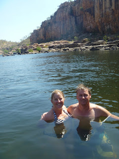Went to the hot springs in Katherine. Again I would like to indicate any water below body temperature can not be called hot. So lets rename them to Katherine luke warm on the cool side springs. Still very enjoyable in the water and the waterfall cascading into the pool was very pretty. Unfortunately I had to pluck a child from underneath the falls who had come down on her stomach and got caught under the water. No parents attending to poor child, I'm just glad I was there to pull her out. Kid not happy though....ran to mum and told her a strange lady grabbed her arm. Next time I'll leave her!!! Went back to caravan park and swam in park pool. Quite warm compared to the others we have been in.